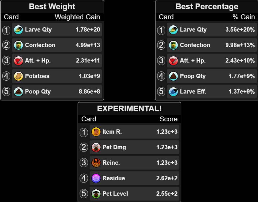 This section offers you some card suggestions you should consider. However, at the moment the one to always consider is EXPERIMENTAL. It is