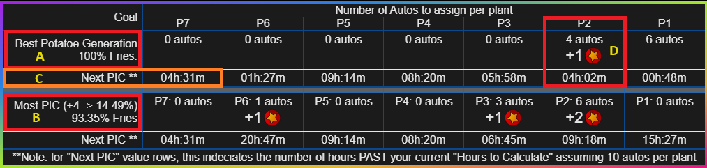 number of auto plots per plant, you will start from the highest plant (left side of the table) and work your way down. For each 'step'