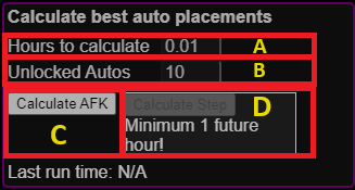 you will place all autos to be running the specified plant for the specified duration. I.E. in my case it recommends 0hours for plants P7-4 so I will
